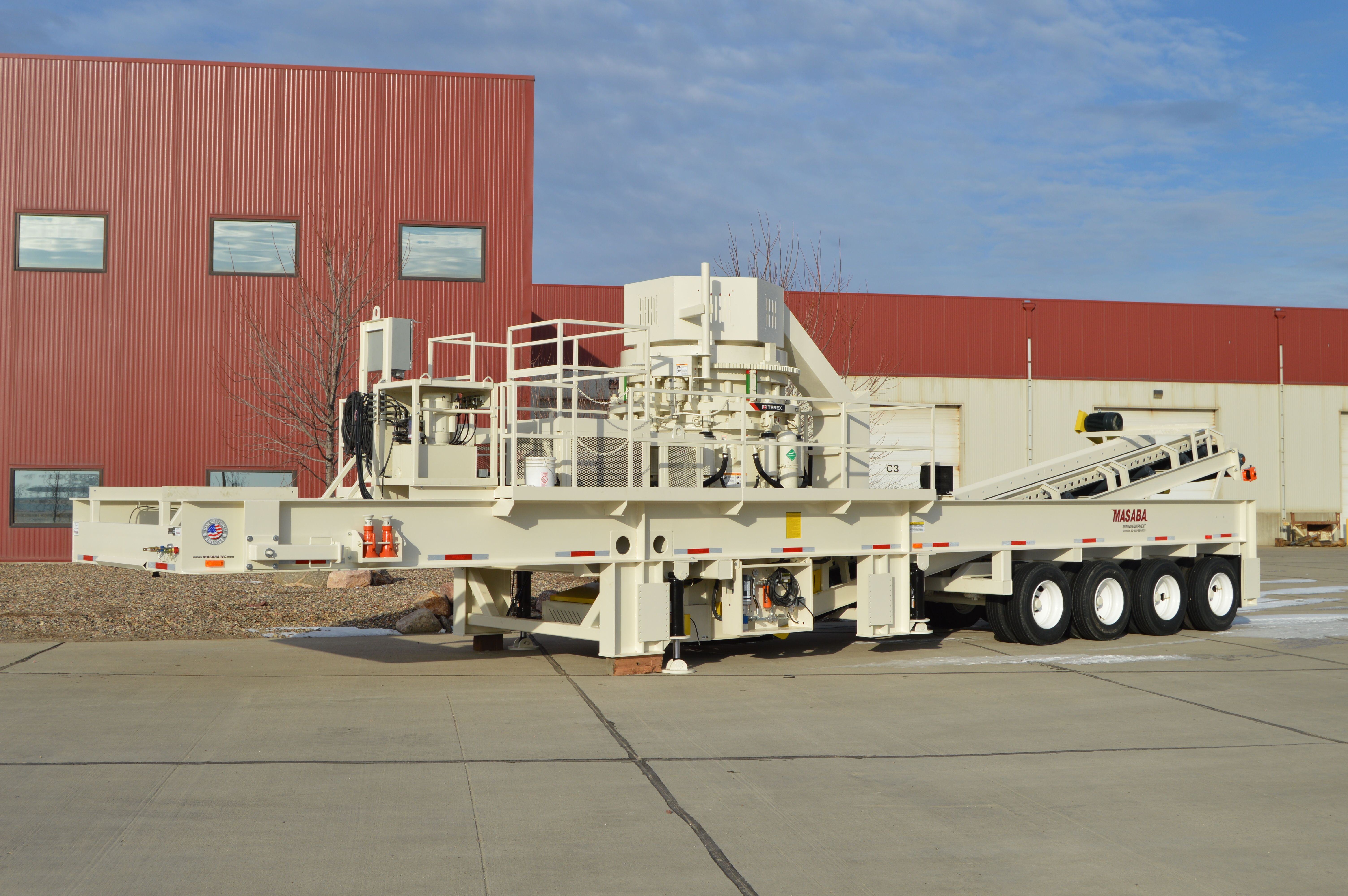 Masaba Portable Crushing Plants are designed and built to be the toughest plants available. The Masaba Portable MVP 450X Plant is built on a Heavy Duty Wide Flange Beam Chassis (1) and features Upper and Lower Access Platforms (2) complete with diamond plate decking, kickplates, and double 2” handrails. The 48” Discharge Conveyor (3) comes complete with impact idlers and 3 ply belting and discharges product from under the crusher and the 1/4” Cone Overflow Chute (4).